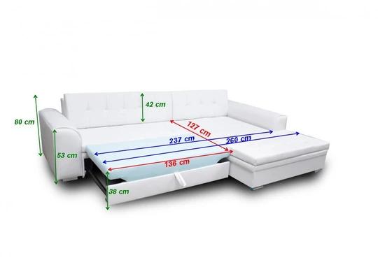 Mezi výhody prostorné sedací soupravy nepatří jen moderní design, ale i královský relax. Ve svém repertoáru ukrývá rozkládací funkcí, kterou získáte spací plochu o 237x127 cm. Nemá však úložný prostor.
