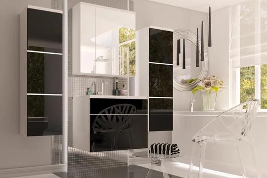 Design sestavy ocení především lidé se zalíbením v elegantním a čistém interiéru. Nábytek je vyrobený z PVC a MDF desek, které jsou využívány pro svou vysokou odolnost vůči vlhku a vodě. Povrchy jsou hladké a omyvatelné. Skříňky jsou vybaveny systémem push click, což znamená, že se dají otevírat i bez úchytek.