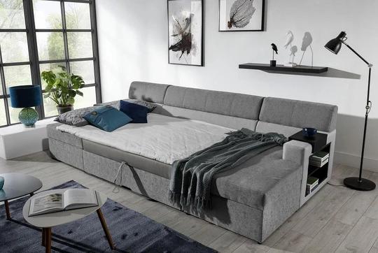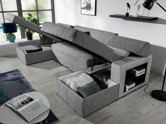 MAX rozkládací sedací souprava ve tvaru U s knihovnou a odkládací policí