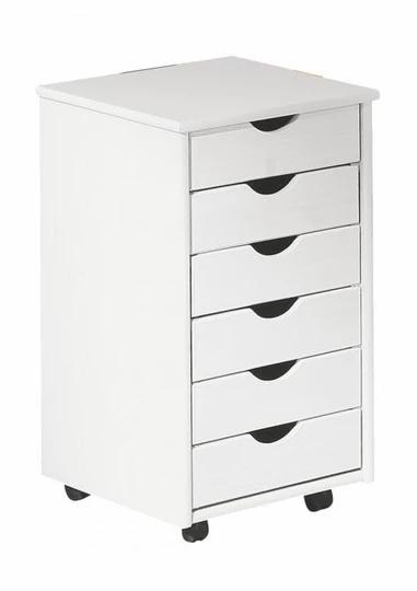 Zásuvkový kontejner je vyrobený z pevného lamina, které je velmi odolné vůči krátkodobému působení vody, zvýšeným teplotám a mechanickému poškození (př. poškrábání). Je také snadné na údržbu a hygienicky nezávadné. Kontejner byl navržen tak, aby byl maximálně funkční a díky kolečkům praktický. Je v bílé barvě.