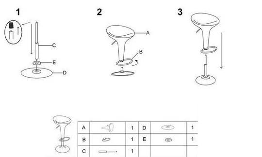 Pevná a stabilní noha je vyrobená z chromované oceli, sedák z odolného lakovaného plastu, který je opatřený ABS hranami. Součástí nohy je i podnožka.