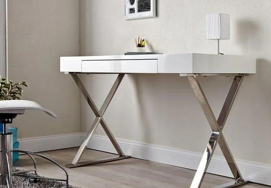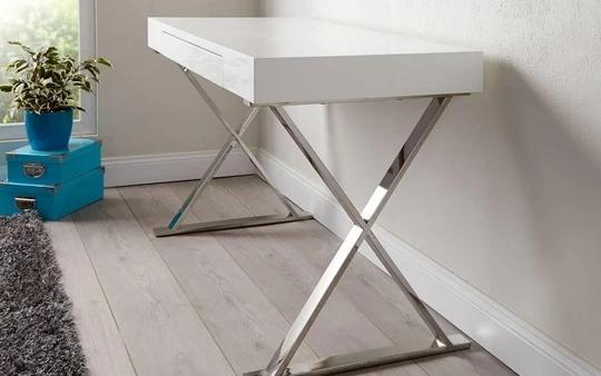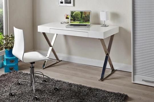Psací stůl do pracovny v jednoduchém industriálním designu s vysokým leskem.