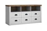 Součástí obývací sestavy France jsou čtyři komody a dva nádstavce. Díky tomu získáte množství úložného prostoru, o kterém se vám ani nezdálo. Pokud jako většina vlastníte interiér, kdy je obývací pokoj propojený s kuchyní, máme pro vás dobrou zprávu. Z multifunkční kolekce France si sami můžete vybrat z nabídky samostatných dílů, ze kterých lze sestavit i jídelnu. Nicméně nábytek bude působit dobře i v předsíni nebo pracovně.