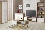 Kolekce nábytku River ve třech atraktivních dekorech - dub sonoma, dub sonoma/bílá a bílá.