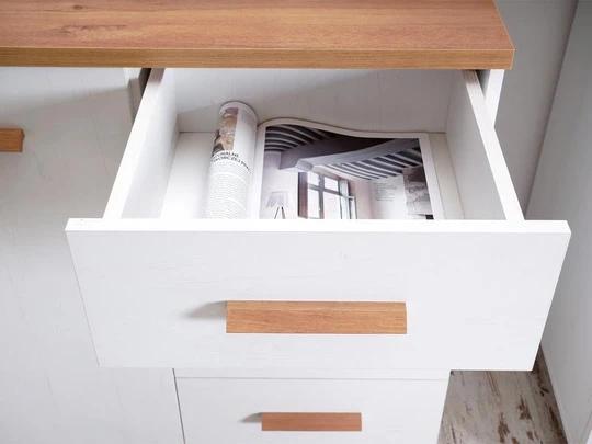 Komplet nabízí úložné prostory pro oblečení i boty. Skládá se z kvalitní dvoudveřové a jednodveřové skříně z masivního dřeva, díky kterým už nebudete muset přemýšlet, kam pověsit bundy. Své využití najdou určitě i komoda a zrcadlo, které podtrhne jemnost a spolehlivě projasní i tu nejtmavší předsíň.