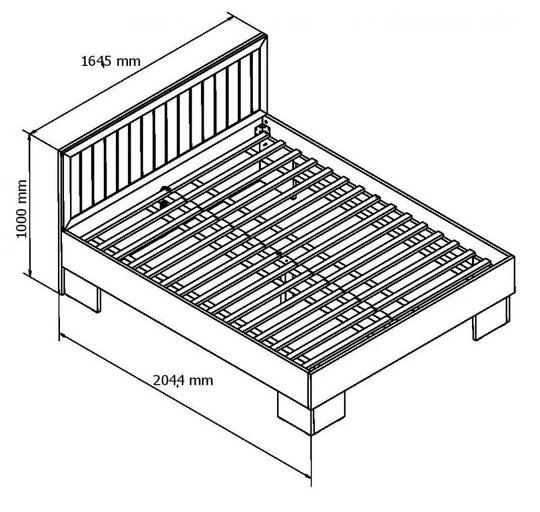 - postel - výška 100 cm, šířka 165 cm, hloubka 205 cm