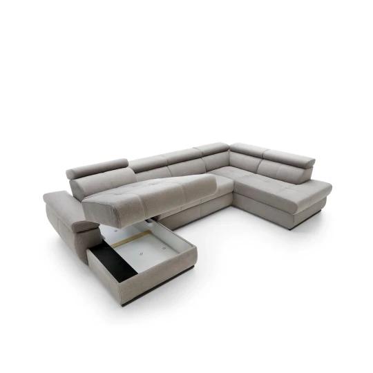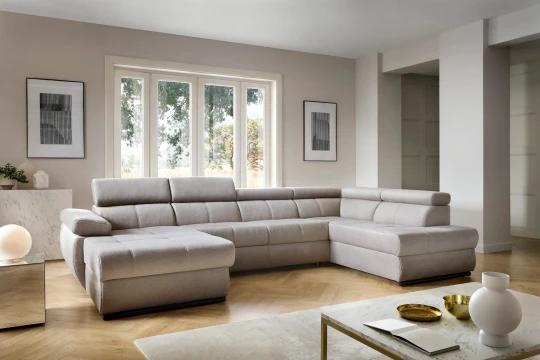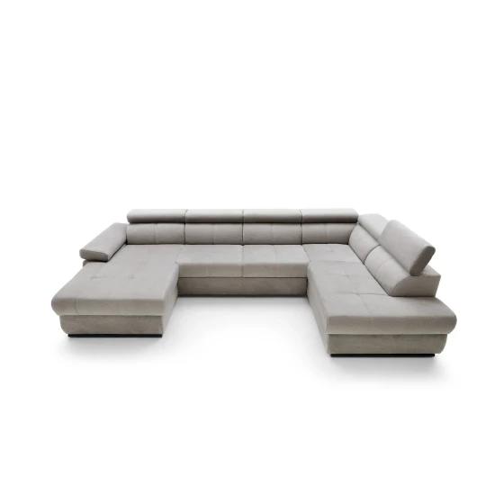 FABIOLA U moderní rozkládací sedací souprava do U s regulovatelnými opěrkami hlavy a loktů