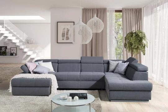FABIOLA U moderní rozkládací sedací souprava do U s regulovatelnými opěrkami hlavy a loktů