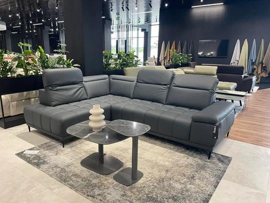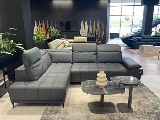 Moderní rohová sedací souprava s nastavitelnou hloubkou sezení (na elektřinu).