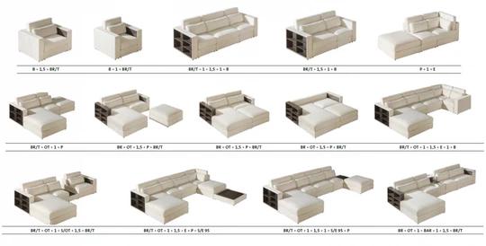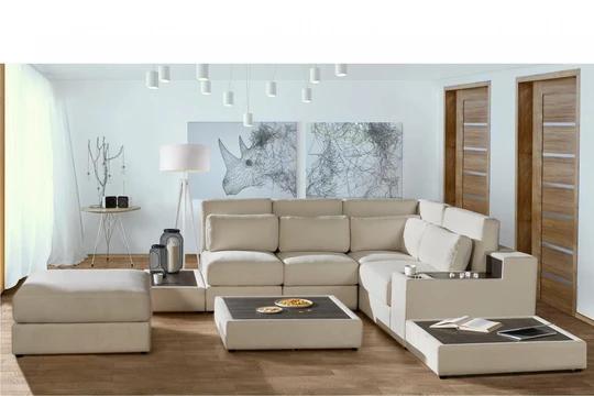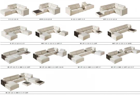U soupravy je možné měnit druh a barvu látky tak, aby co nejlépe zapadla do vašeho obýváku. Vybrat lze i dekor dřeva boků a svrchních desek u odkládacích prostor - černý, dub salina, borovice andersen, světle šedá, arusha a dub sonoma.
