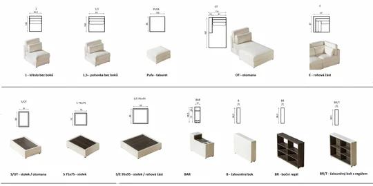 RHINO L moderní sedačka s knihovnou, možnost sestavení na míru