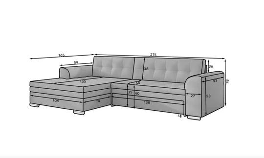 LIBRA je multifunkční, elegantní a prostorná rohová sedací souprava vyrobená v moderním stylu. Jedná se o vysoce kvalitní kus nábytku, který je synonymem komfortu, díky širokému sedáku s hloubkou 60 cm a extrémně flexibilní pěně T30. Libra s rozměry 275 x 165 x 78 cm znamená nejen pohodlí, ale také dobrý spánek díky jednoduchému rozkladu typu delfin ziskate plochu o rozměrech 215x128 cm