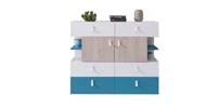 Dobrá modrá v kombinaci s dubovým dekorem, pevným LTD materiálem s jemnými liniemi. To jsou výrazné prvky této dětské sestavy, se kterou snadno vytvoříte pohodou a hravou atmosféru.