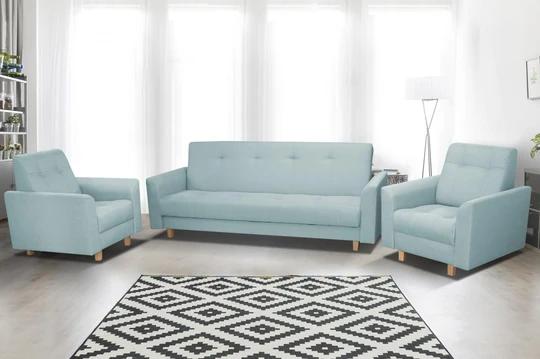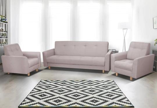 K pohovce lze dokoupit křeslo (85x85 cm, výška 90 cm) a vytvořit si tak sedací soupravu. Nožky jsou dřevěné v dekoru buk.