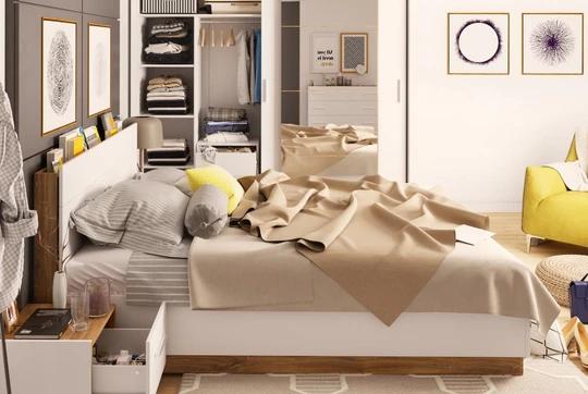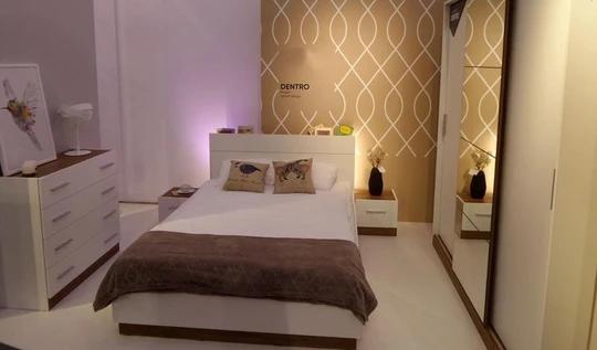 Postel Dentro pochází ze stejnojmenného sektorového nábytku, který mimo jiné nabízí i šatní skříň, komody či noční stolky.