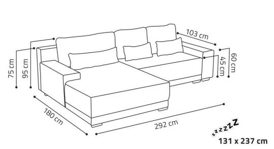 Strana sedačky je univerzální - to znamená, že roh se dá namotnovat na levou i pravou stranu.
