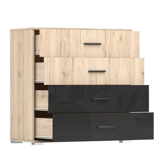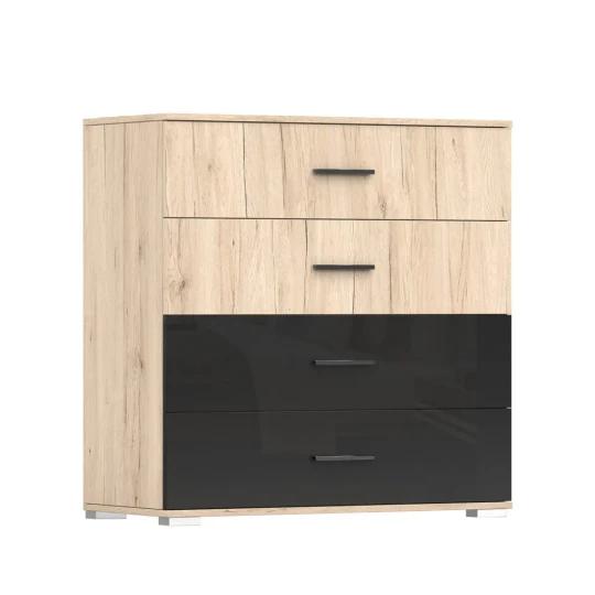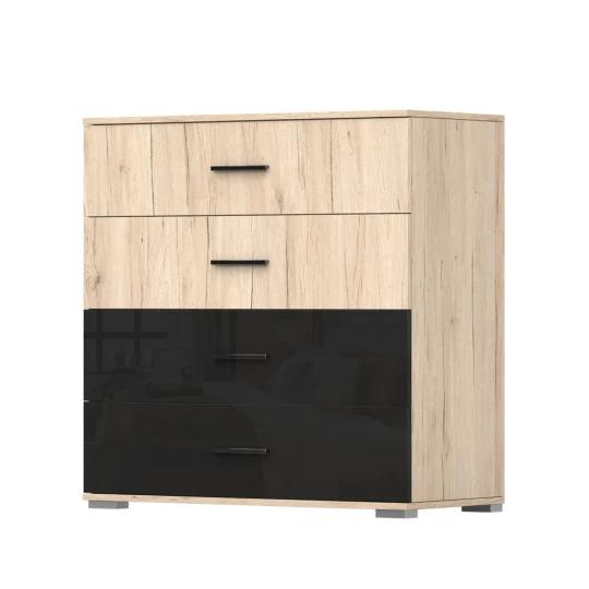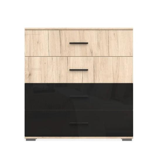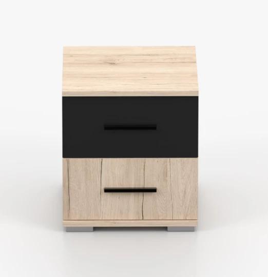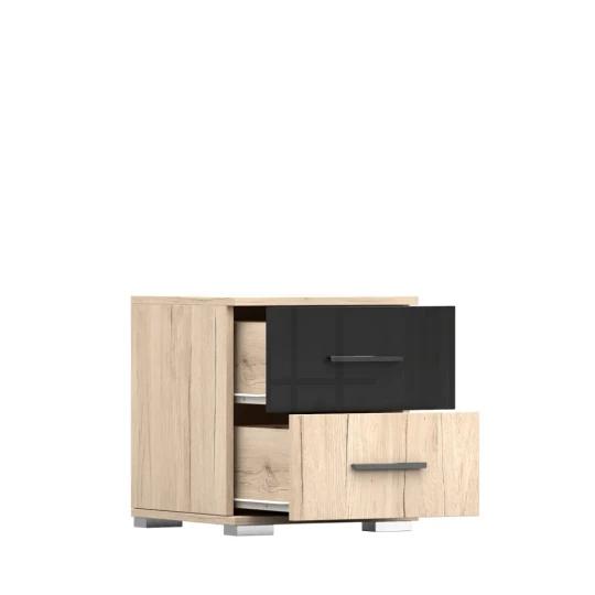 Celek doplňují praktické noční stolky a komoda, které rozšiřují úložné možnosti a pomáhají udržet ložnici přehledně uspořádanou. Nábytek je vyroben z kvalitní laminované desky s odolnými ABS hranami, což zajišťuje pevnost, stabilitu a dlouhou životnost při každodenním používání.