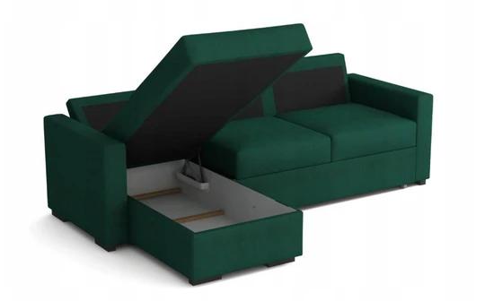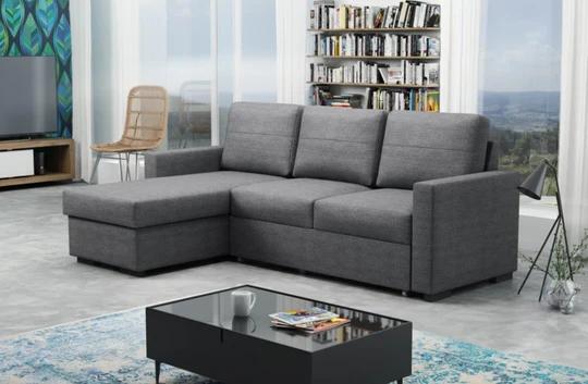 Mezi výhody rohové sedačky Luther patří úložný prostor a rozkládací funkce o rozměrech 137x200 cm s možností občasného spánku.