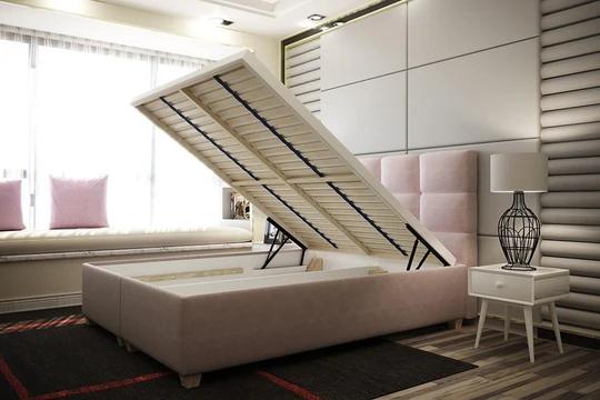 Moderní postel s lamelovým roštem s pístovým mechanismem v ceně.