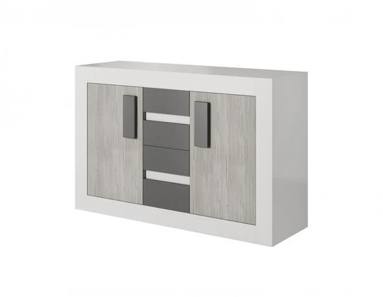 Komoda je tvořena čtyřmi zásuvkami a dvěmi dvířky, do kterých můžete umístit vše, co potřebujete uschovat. Je vyrobená z kvalitní laminované dřevotřískové desky, a je tedy odolná vůči poškrábání, slunečnímu záření a krátkodobému působení vody.