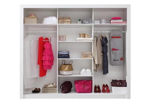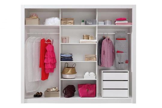 - Šířka 250 cm, výška 215 cm, hloubka 60 cm – dostatek prostoru pro oblečení