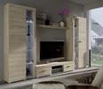 Obývací stěna se skládá z televizního stolku, dvou vitrín a police. V případě potřeby úložného prostoru navíc lze dokoupit také příslušná komoda. Nábytek je vyrobený z kvalitního lamina, které je velmi odolné vůči mechanickému poškození (př. poškrábání), vlhkosti a nepodléhá času.