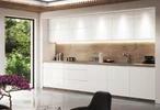 Moderní sektorová kuchyňská linka s bezúchytkovým systémem otevírání dvířek. Skříňky mají speciální frézování, díky kterému je lze normálně otevírat a zavírat.