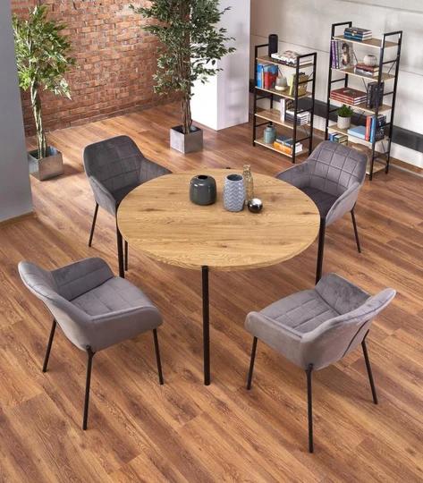 MORGAN kulatý jídelní stůl v industriálním stylu, dub zlatý
