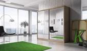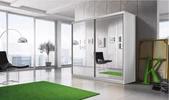Šatní skříň disponuje posuvnými dveřmi, takže bude ideální i k umístění do předsíně.