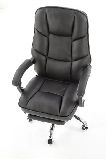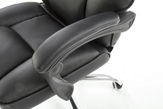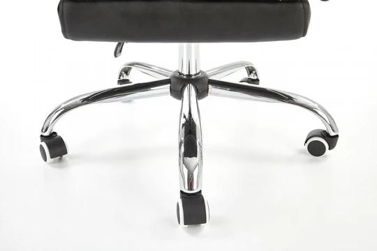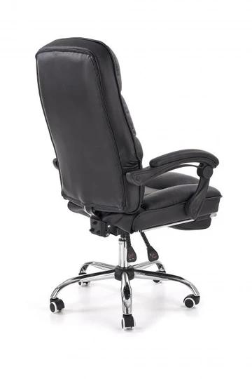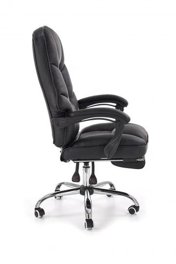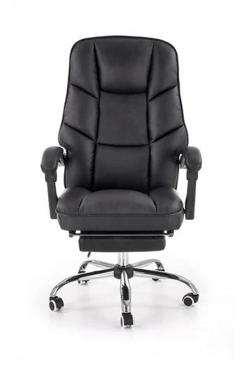 Kancelářská židle je čalouněná černou eko kůží; konstrukci tvoří chrom.