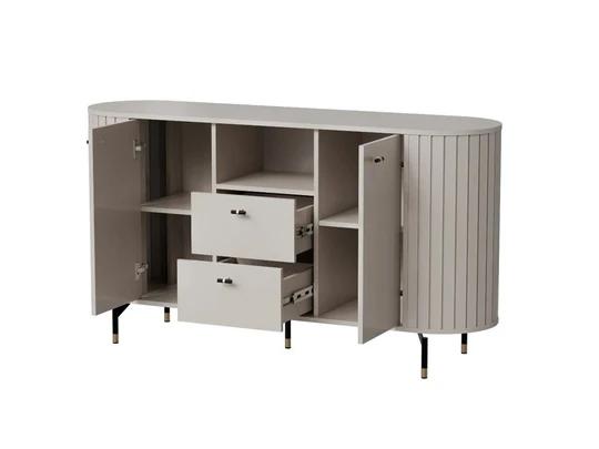 Komoda Dallas II 2D2S je skvělou ukázkou moderního, minimalistického designu, který se zaměřuje na kvalitní materiály, čisté linie a funkčnost. Tmavé tóny v kombinaci s hladkými, vertikálními lamelami bezpochyby vytváří neobvyklou kompozici.