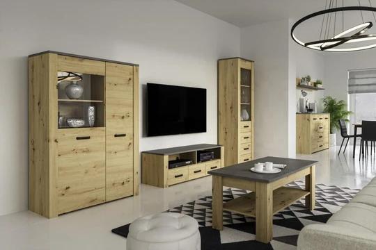 TV stolek IRVINE je skloubením nejnovějších trendů a společně s dekorem dub artisan/ smooth grey je perfektním spojením do Vašeho interieru.