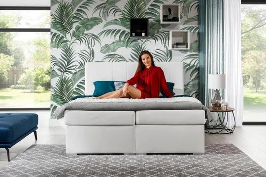 Manželská postel typu boxspring Bolero  si vás získá nadčasovým designem a vysokým komfortem. Matrace je vyplněná pružinou bonell, která poskytne vašemu tělu dokonalou oporu a zároveň flexibilitu pro ničim nerušený spánek. Je potažená odnímatelným povlakem. Do jejích dvou úložných prostor snadno schováte peřiny, povlečení či prostěradla.