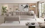 U rohové sedací soupravy Nantes je možné měnit druh a barvu látky tak, aby co nejlépe zapadla do vašeho obýváku.