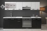 Kuchyně je vyráběna v dekoru bílý korpus a šedý lesk na dvířkách. Pracovní deska není v ceně, ale je možné jí zakoupit v dekoru bílá, hrubost 28 mm.