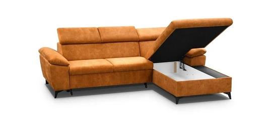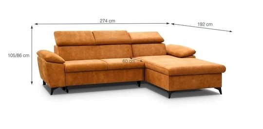 Moderní sedací souprava s funkcí rozkladu a možností následného spánku o ploše 126x210 cm. Součástí sedačky je i úložný prostor a regulovatelné záhlavníky.