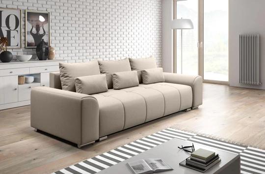 Pohovka disponuje úložným prostorem, do kterého schováte vše, co nebudete potřebovat. Pokud se rozhodnete strávit noc u televize, můžete ji rozložit a získáte tím prostor o velikosti 198x149 cm.