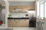 Je složena z několika druhů skříněk, díky kterým budete mít dostatek úložného prostoru na všechny kuchyňské potřeby. Se svými rozměry perfektně zapadne i do menších interiérů. Pracovní deska má hrubost 28 mm. Váha kuchyně je 148,8 kg.
