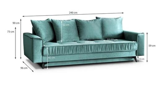 Retro pohovka s funkcí rozkladu a možností následného spánku o ploše 140x200 cm. Součástí pohovky je i úložný prostor.