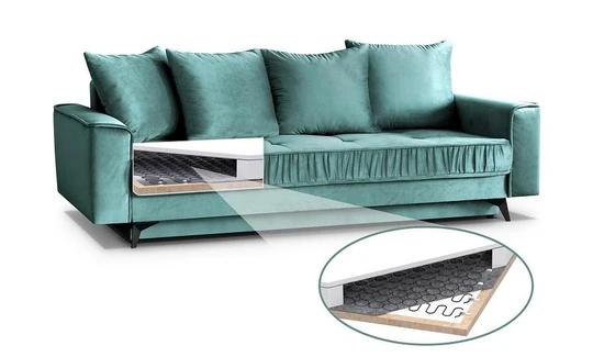 Konstrukce pohovky je tvořená kombinací masivního dřeva a dřevotřísky. Tarent je vyplněná kvalitní PUR pěnou, která se řadí mezi středně měkké pěny se zvýšenou pružností a samozřejmě pružinami bonell. Bonell pružiny patří ke kvalitnějším pružinovým systémům. Jsou řádově spojeny spirálovým drátem, čímž je tvořeno jádro. Při sezení na sedačce tak reaguje téměř celá plocha, neboť se váha přenese postupně na všechny pružin. Jsou velmi pevné a prodyšné.