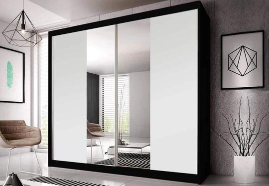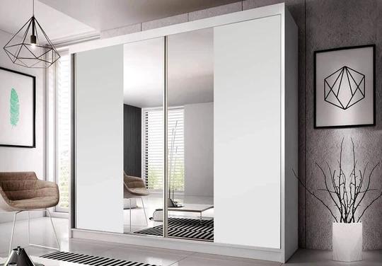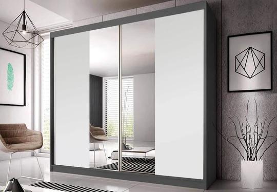Velká posuvná skříň disponuje štědrým úložným prostorem, který ocení především poctivě nakupující ženy. Uvnitř se nachází několik praktických polic a šatní tyč. Zrcadlo vám pomůže vychytat poslední detaily při oblékání. Nábytek je vyrobený z kvalitního lamina, které je velmi odolné vůči mechanickému poškození (př. poškrábání) a nepodléhá vlhkosti či slunečnímu záření.