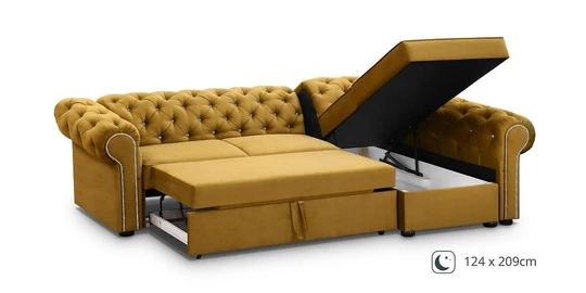 RAMONA XL rozkládací rohová sedačka v chesterfield stylu, látkové knoflíky