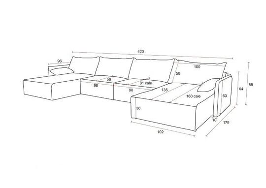NOEL U designová rozkládací sedačka do U s úložným prostorem