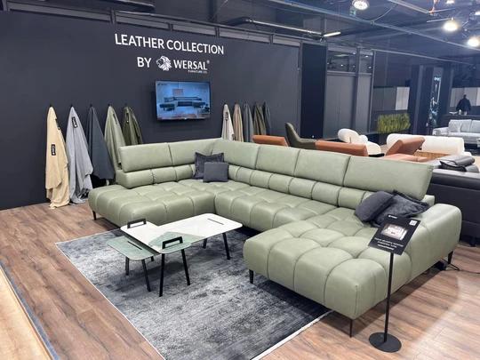 Moderní sedací souprava ARKUS XL ve tvaru U s elektricky nastavitelnou hloubkou sezení.