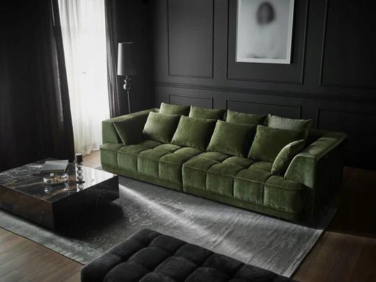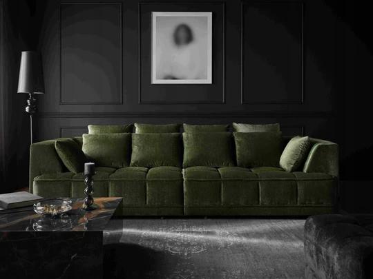 Zadní strana je čalouněná, takže ji s klidem můžete umístit do středu i rohu místnosti. Nabízí možnost měnit druh a barvu látky tak, aby co nejlépe zapadla do vašeho obýváku.