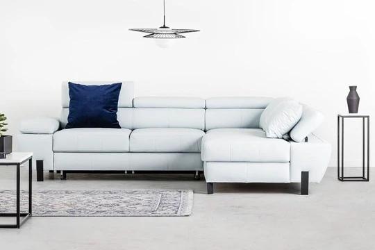 CALIN rozkládací rohová sedačka s nastavitelnými opěrkami hlavy a loktů v pravé kůži