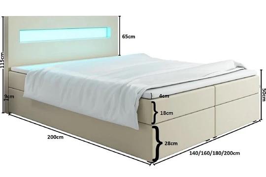 MALONE 200x200 cm kontinentální postel boxspring s led osvětlením
