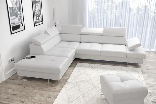 SANDET moderní sedací souprava s polohovacími záhlavníky v pravé kůži