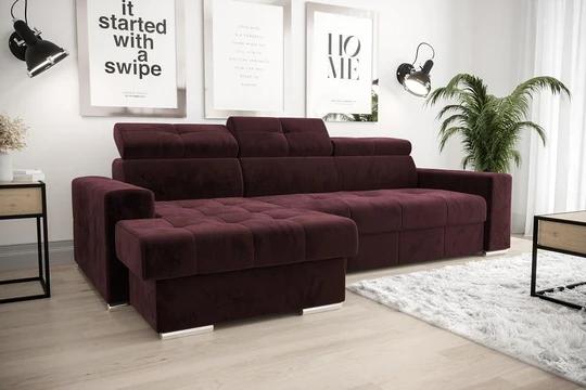 Zadní strana je čalouněná, takže ji můžete umístit do rohu i středu místnosti. Nožky jsou chromované.