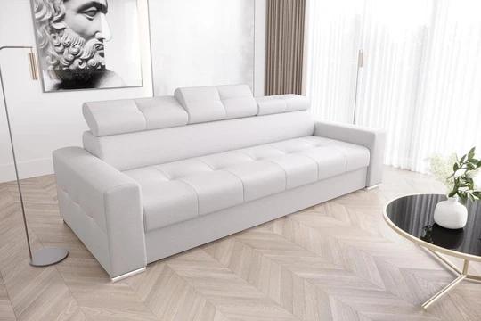 Zadní strana je čalouněná, takže ji můžete umístit do rohu i středu místnosti. Nožky jsou chromované.